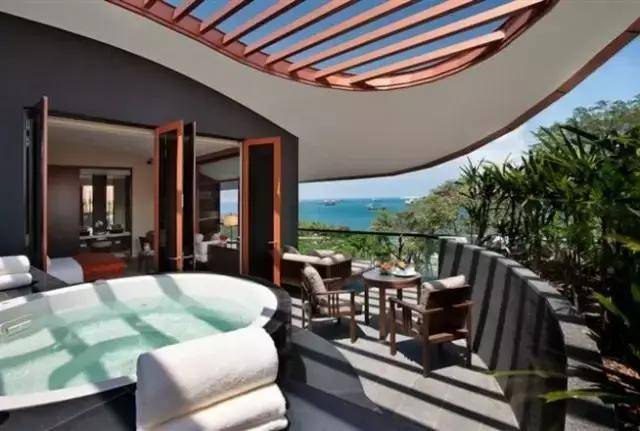 每一间嘉佩乐套房均拥有100平方米的空间,让入住宾客可从超大露台欣赏到中国南海美景的同时也能尽情享受圣淘沙的宁静环境。