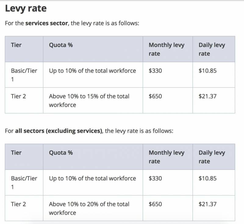 和SP一样,公司有人头配额,服务行业WP人数不可以超过公司总人数(包括本地人和外国人)的8%,公司还需为员工购买保额至少15000新币的医疗保险,缴纳5000新币担保金。