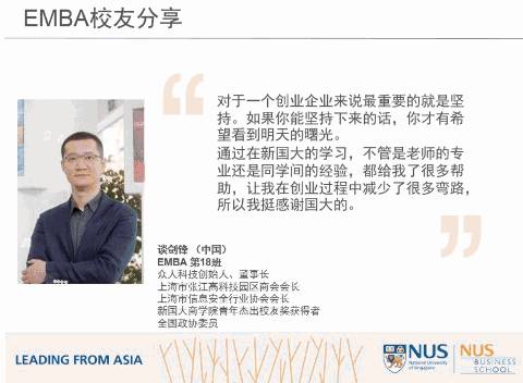 自1997年起,商学院还推出全球第一个中文EMBA课程,培养了来自世界各地1000余名管理精英。作为新加坡眼的读者,你稍微跟进一下,这里面肯定有你们熟悉的名人。