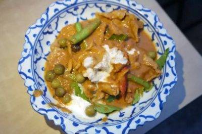 绿咖喱的主要成分包括椰奶、各种香料、茄子、鱼露、青柠檬和罗勒等食材。牛肉给的量很足,很嫩,这样一份才$8!他家的绿咖喱调味不会太重口,也不会太辣太刺激,很好入口也很下饭。