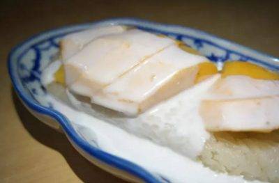 Mango sticky rice served with coconut milk 椰奶芒果糯米饭