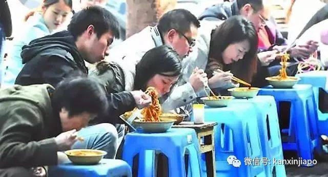 不管是boss、白领,还是学生、棒棒,都吆喝一声“老板,来碗小面 ”,然后站着、蹲著、挤著……不顾形像地“呼啦呼啦”地吃着。