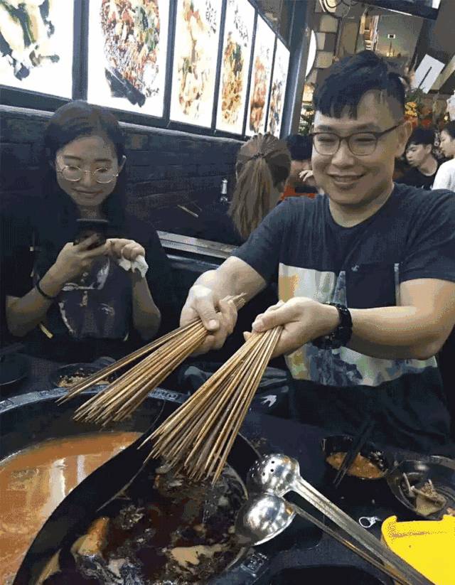 一个人,点碗小面;两个人,来锅串串;三四个人,一锅串串,两碗小面……