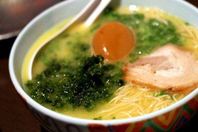最早发源自九州,使用猪骨长期熬炖出白色的浓汤。也可加酱油成为“豚骨酱油味”。