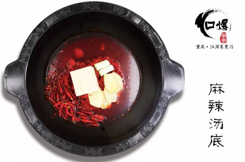 “口 爆串串”有麻辣锅底、药膳乌鸡锅、酸萝卜老鸭锅、香浓番茄锅和野山菌汤锅五种。