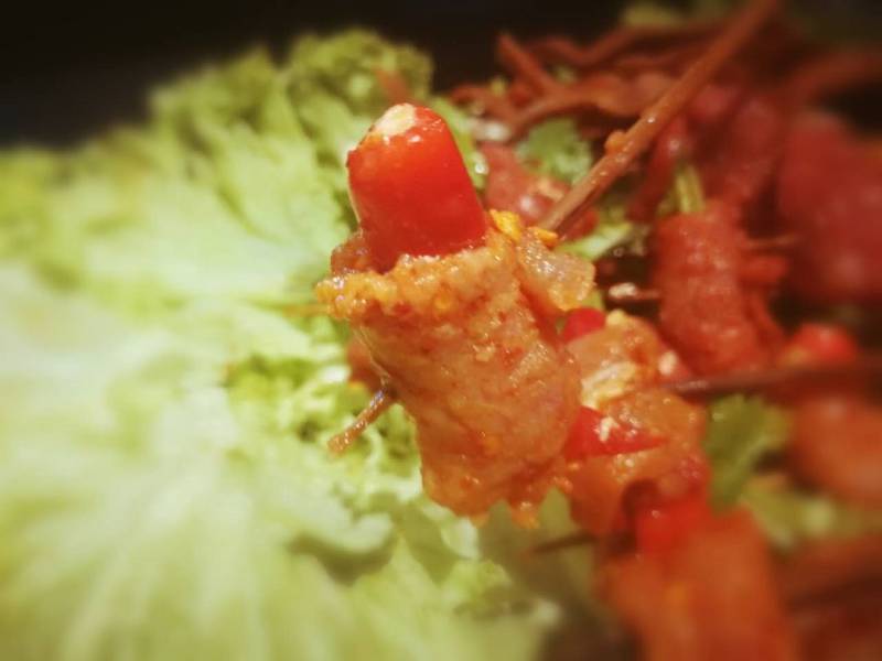 泡椒牛肉,用的是嫩牛肉包泡椒,一口咬下去,泡椒在口中爆炸~!那味道,无比酸爽~