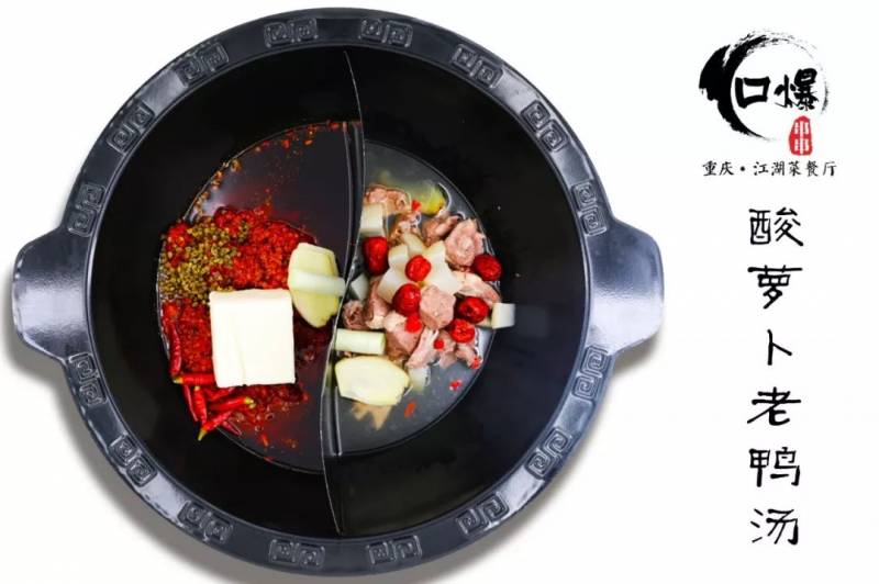 特别要提一下酸萝卜老鸭锅,里面的酸萝卜都是用从重庆带过来的老坛水泡制。可能很多人纳闷,不能直接做坛水吗,非要从千里之外带过来。告诉你们,在泡菜界,老坛水是黄金一般的存在。