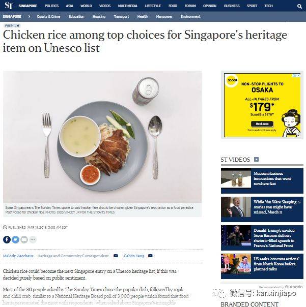 3月11日:“海南鸡饭是新加坡人最想列入名单的非物质文化遗产之一”