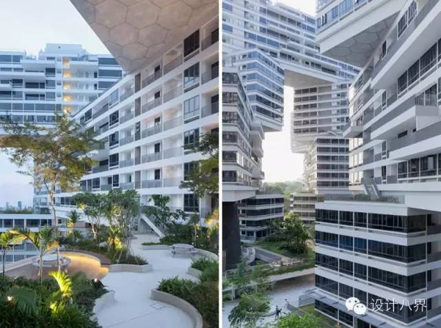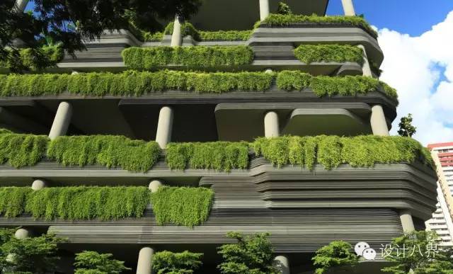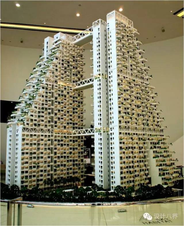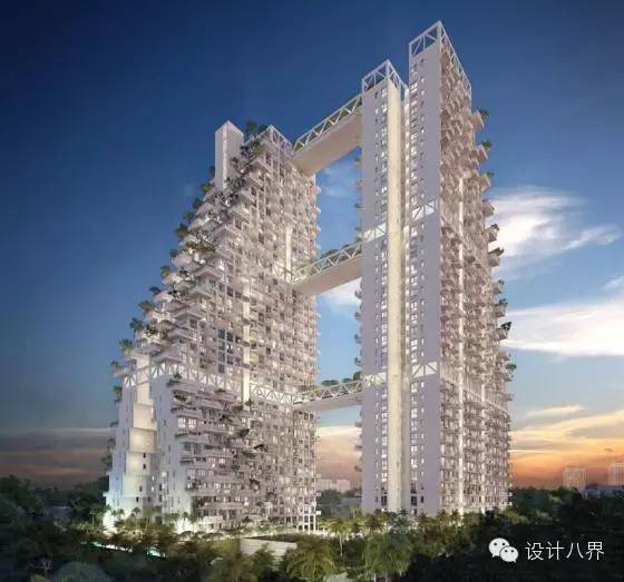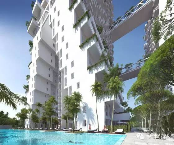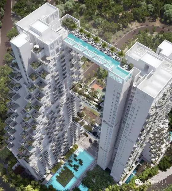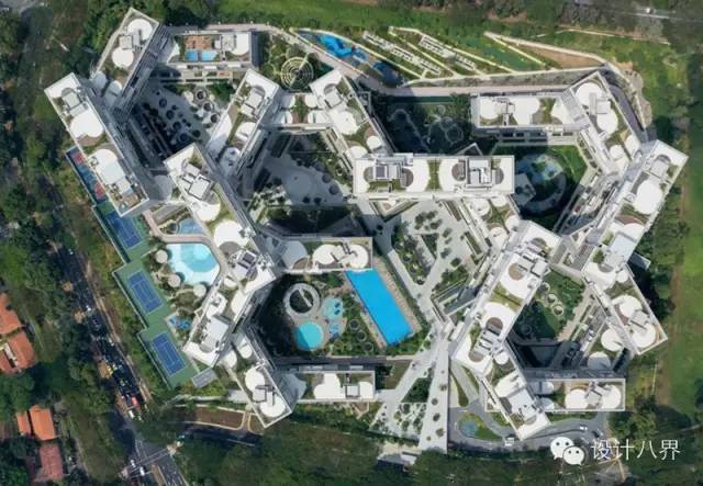 公寓新颖、优美及具气派的外观,错综层叠的设计其实有助提升和培养社区意识,除了提供隐私和宁静的空间,也综合考虑所处地质条件、风向、天气条件、绿化设计等。以确保每名住户都拥有最佳的风景、最好的通风、最好的阳光;获得平等及最接近自然的居住条件!跳脱新加坡传统的住宅孤立的、垂直的建筑模式,探讨延伸热带居住空间的可能性,提出一种与自然环境协调并注重交流互动的热带生活方式。