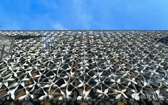 在建筑上安装了雨篷,可避免人们直接受到暴晒或淋到雨水,并进一步收集微风,控制内部和外部环境之间的视觉对比,提高居住者的舒适度。