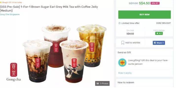 网址:https://myfave.com/singapore/gong-cha-singapore-gss-pre-sale-1-for-1-brown-sugar-earl-grey-milk-tea-with-coffee-jelly-medium-52536?utm_source=OMG-SG&utm_medium=Affiliate&utm_campaign=531375