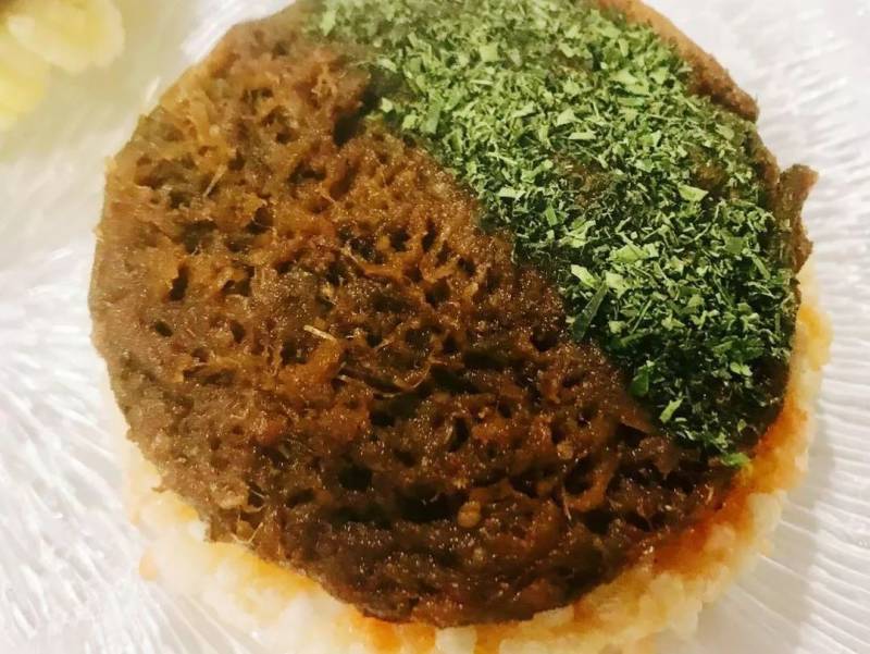 而饭上洒的椰子松,也需要多个步骤准备,先将椰子切成丝,晒干椰子丝,再下锅油炸。这道菜非常传统,在新加坡餐馆很少见。