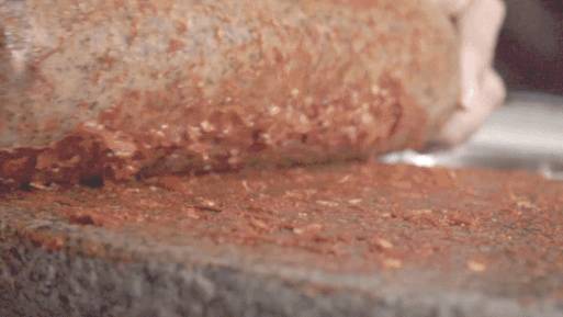 例如,他会花长时间使用最传统的器具,将辣椒磨碎做佐料。