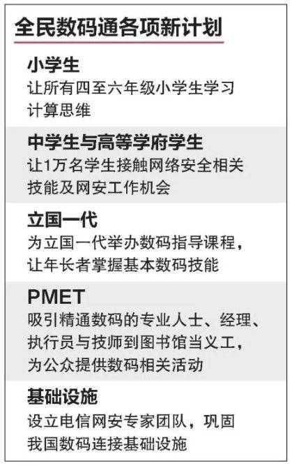 “我们要把触角延伸到每个企业,不论规模大小,都要接触到所有员工,不论他们来自什么行业或技术背景,以及每位国人,不管他们属于哪个年龄层或教育程度……我们要建设一个数码经济,即每个企业、每名员工都具备数码能力,每个国人都与数码连接。”