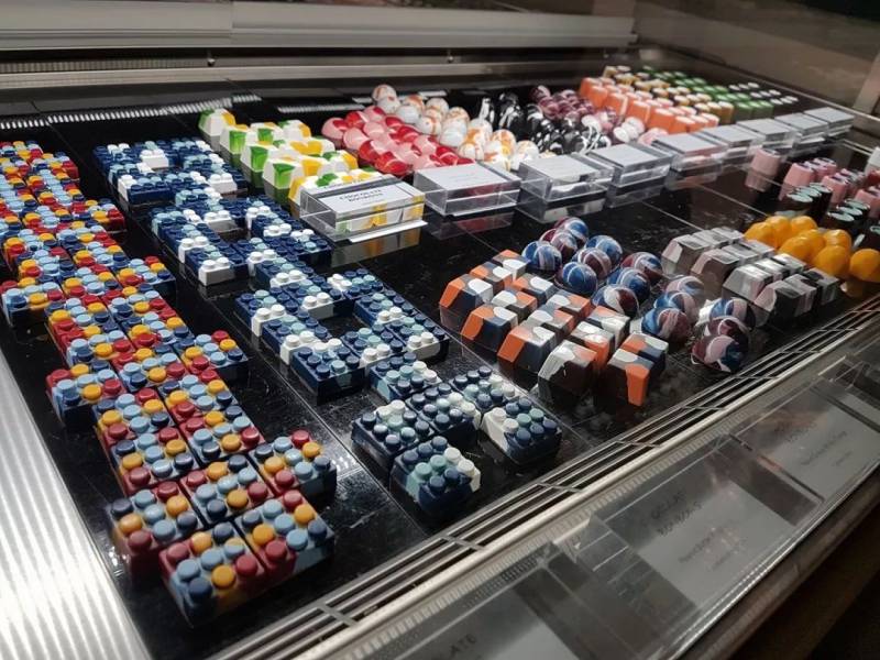 店铺里有按单粒卖的巧克力也有各种口味的冰淇淋。单粒巧克力的价格大概是S$21/500g.