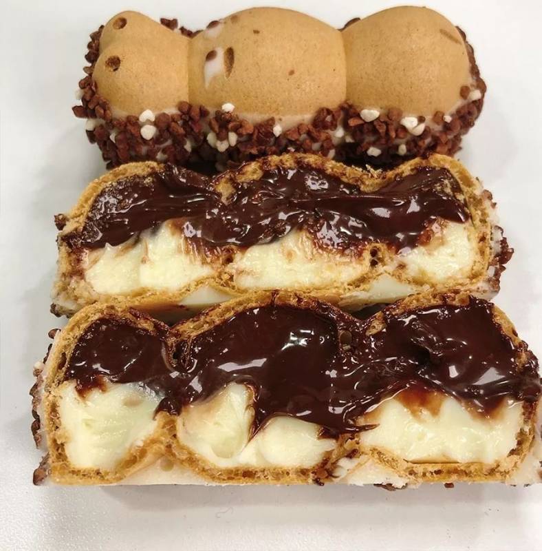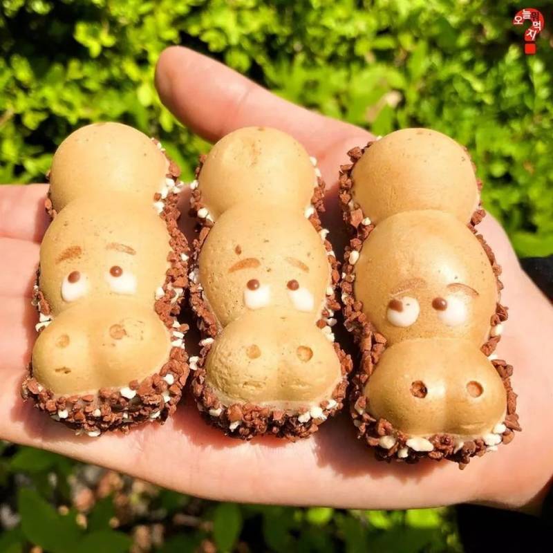 Happy Hippo 外层是河马型的脆皮,覆蓋巧克力酱和榛子碎;河马肚里内陷是特浓的牛奶夹心和榛子巧克力酱。