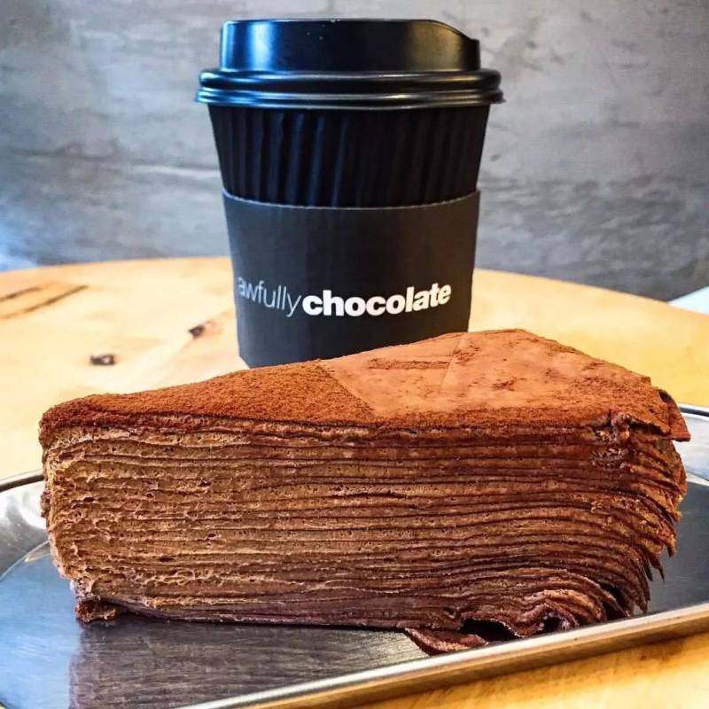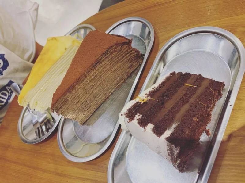 开头就说最近被安利了,味道确实不错,小妹尝试了店里的巧克力千层,饼皮柔软,层与层之间的巧克力酱味道浓郁香甜,最外层撒上了巧克力粉,微微有点苦,味道配合得恰到好处。