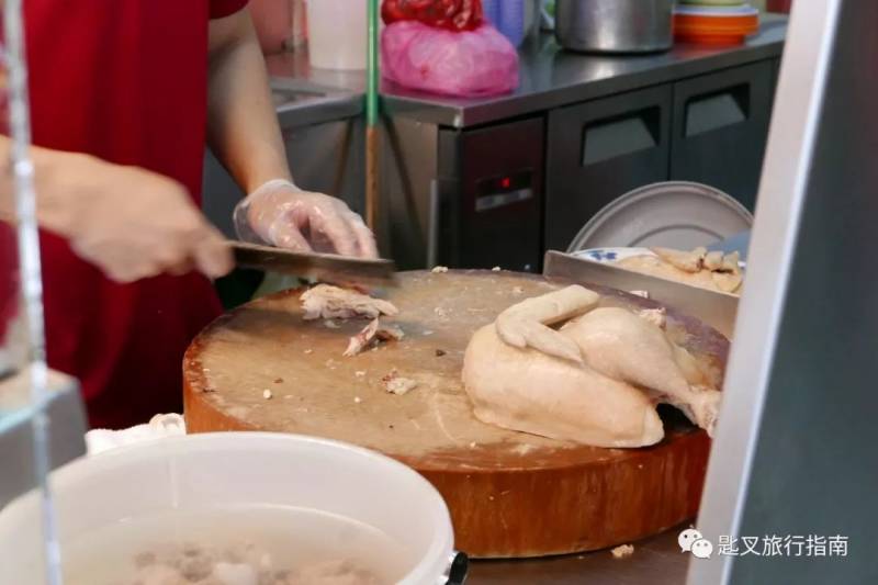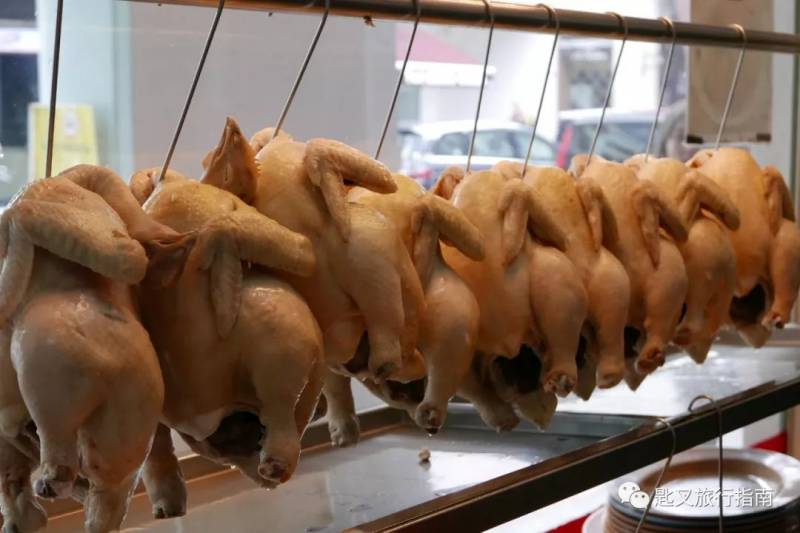 一排美鸡作为店招在门口热情欢迎来客,手势熟练的小哥在案板后切鸡。我们去时已过饭点,餐厅人并不算多,但小哥的手没停过。