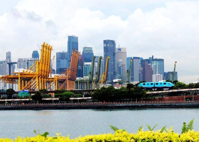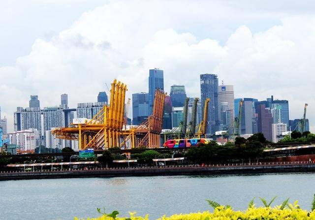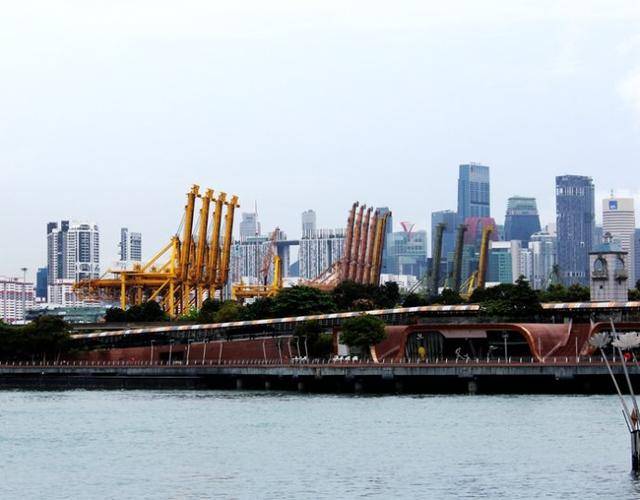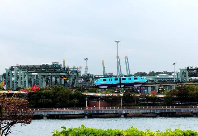 新加坡岛上的码头 港口 建筑 及轻轨交通道