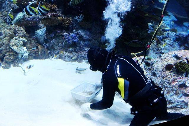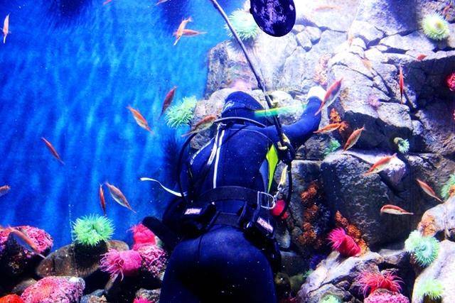 清洗海底世界的工作人员 能看出性别吗 这里有男也有女性