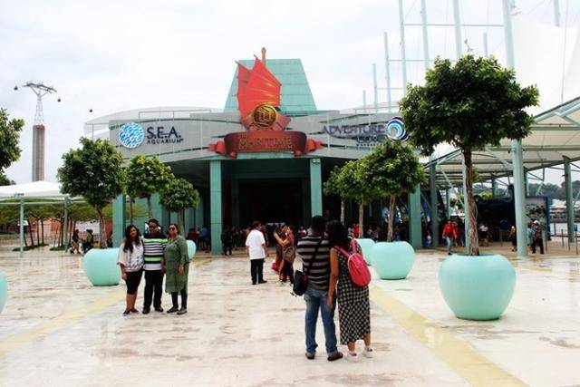游览新加坡海洋博物馆,基本算是我们这次游程的最后一个项目。海洋博物馆在新加坡第二大岛屿圣淘沙岛上,算是一座半地上半地下的游览场馆,在岛屿的海边,海湾对面便是最大的岛屿新加坡岛。