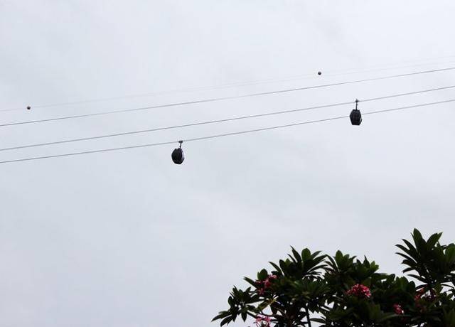 从新加坡岛到圣淘沙岛,有两种方式可以过海。一种是乘车穿过海底隧道;另一种方式就是乘坐高空游览车;有不少游客就是通过第二种方式到达圣淘沙岛的;这也很有意思。