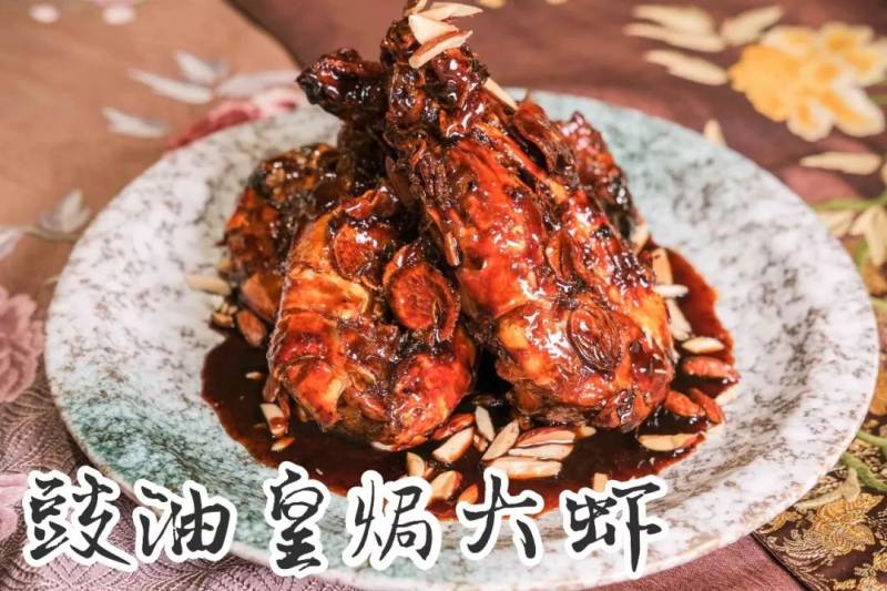 这是一道非常传统的正宗粤菜。大虾经过油炸,再淋上豉油皇,虾的鲜味更加突出。主厨还独具慧心地撒上一层香脆的杏片,软嫩的虾和爽脆的杏片一同入口,口感更加丰富,味道也更耐人回味。