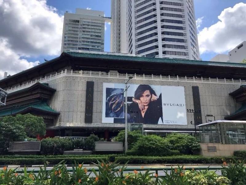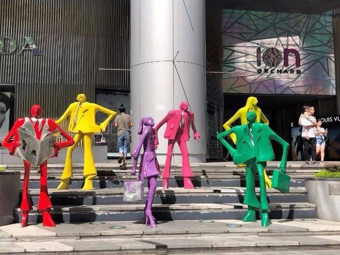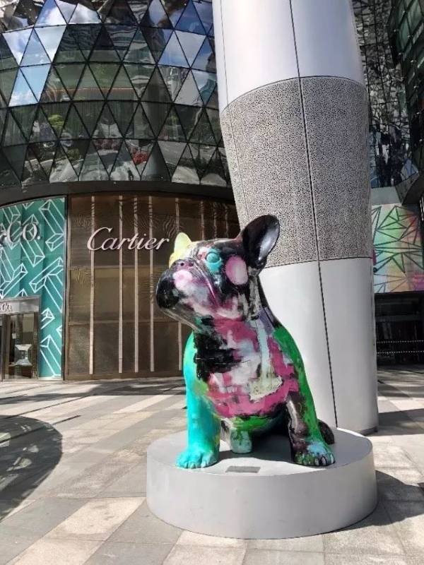 高端商场前,基本均会有各种有意思的雕塑吸引眼球,引来游客拍照。