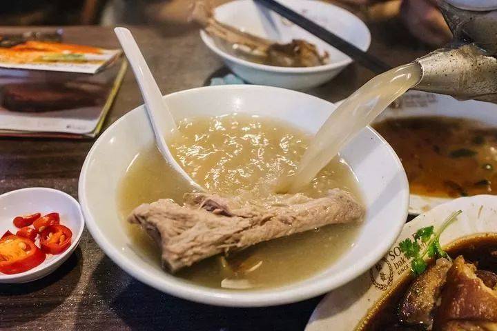 说了这么多东西,怎么能少的了新加坡的经典美食呢?新加坡肉骨茶非常有名,相信很多人都听说过,但是实际体验过后,有点失望,失望的不是因为不好吃,好吃是好吃,但是就是海南排骨汤的味道,没有体验到什么不一样的感觉,这才知道肉骨茶就是排骨汤,也是秀逗了。后来了解到,新加坡肉骨茶分两个派系,一个是重胡椒味的海南派肉骨茶,颜色偏浅黄,就是我们吃的那种,另外一种是由多种中药煮出来的汤底,颜色偏深色,也就是福建派的吃法,很遗憾没体验到。不过有一点,这边的肉骨茶虽然是一碗一碗的,不过汤喝完了,是可以的原汤“续杯”的哦,来的朋友可以多喝几碗!