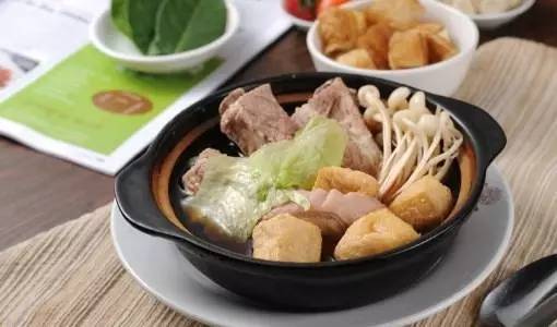 肉骨茶并不是茶,而是以带肉的骨配合中药煲成的汤,它在新加坡颇受欢迎。肉骨茶的做法有流派之分:福建派,汤浓,用中药材和香料,加老抽,药香浓郁;潮州派,汤清,用猪骨和胡椒主调味,加生抽,又香又甜。