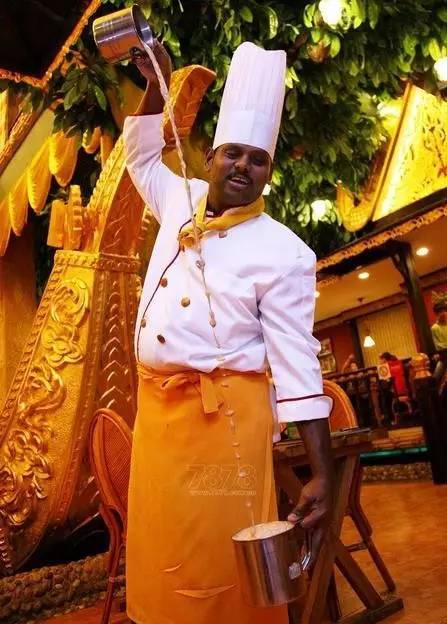拉茶又被称为:"飞茶",是用两个杯子拉来拉去,拉得越长,起泡越多,味道就会越好,是人们最喜爱和饮用最普遍的含茶饮料。