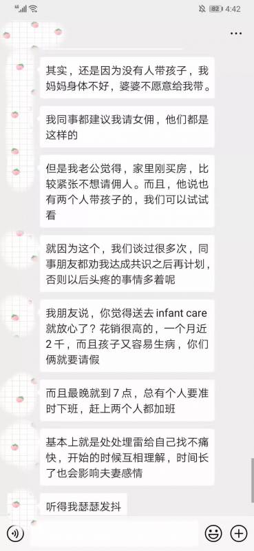 有些家长不愿意来新加坡,来了也有可能因为带娃理念不同,造成严重的婆媳问题,父母的医疗等花费也不少。