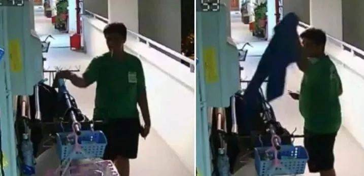 7月2日,一段组屋门前的视频拍下了这一幕,一名身穿GrabFood制服的男子在组屋走廊外徘徊,之后趁没人发现,从门口衣架上拿走一条蓝色毛巾,随后乘坐电梯离开。(事发后有传言:疑似非Grab员工)
