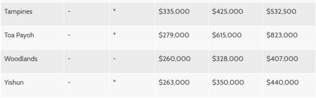 资料来源:建屋局,2018年第三季度转售组屋价格中位数