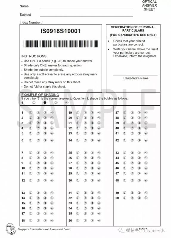 For multiple-choice questions, applicants are required to use a pencil to shade the answers on the Optical Answer Sheet (OAS). The OAS will be issued to applicants together with the test papers. Please click on the image below for a sample of the OAS and instructions on the use of the OAS.