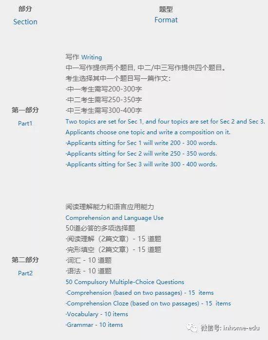 中学的S-AEIS英文测试包含两个部分。考生将有2小时10分钟完成第一部分和第二部分。第一部分和第二部分的试卷在同场考试中完成。