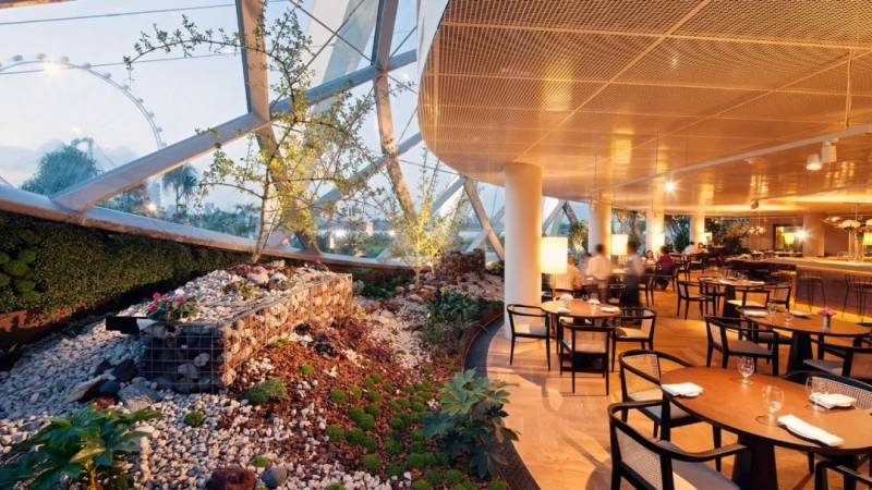 位于滨海湾花园内部的Pollen,被橄榄树、草木和植被所覆蓋,边吃东西边能闻到淡淡的薰衣草和迷迭香的甜味。还有什么能比在花海里用餐更浪漫的吗?