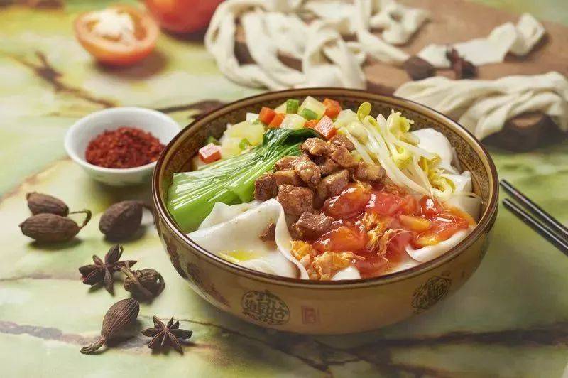 所谓四合一,主要由臊子菜、西红柿鸡蛋卤、肉臊子、腊汁肉融合为一体,肉香与菜香相交融,西红柿鸡蛋酸酸甜甜,肉汁飘香四溢,面汤浓郁可口,面皮爽口而香韧,入口唇齿留香,再撒上少许辣椒粉,怎一个爽字了得!