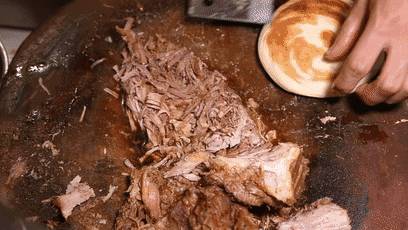 肉夹馍,古汉语“肉夹于馍”。制作肉夹馍的所使用的肉一般酱肉酥烂,滋味鲜长。正由于选料精细,调料全面,火功到家,加上使用秘制的陈年老汤,包上酥软的白吉馍,才使西安的肉夹馍与众不同,别有一番风味!