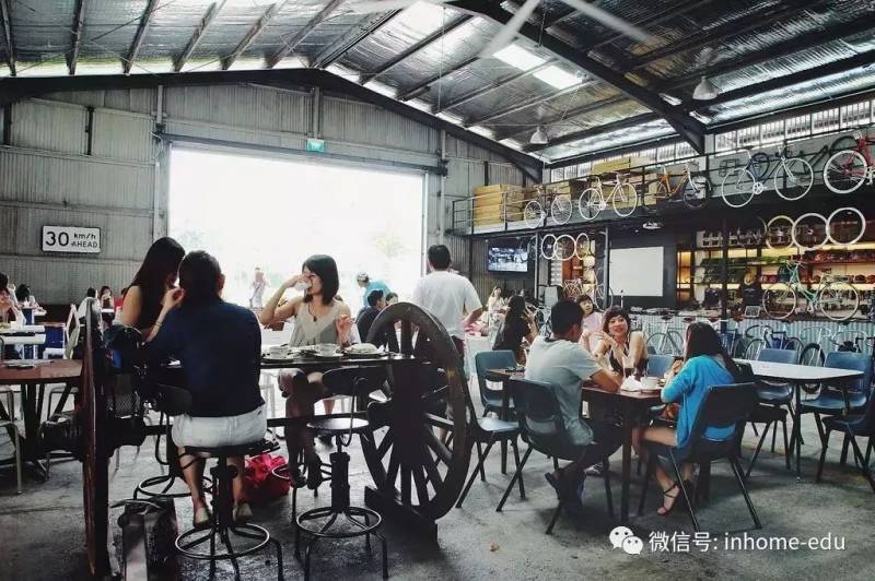 蓝色工业大门和单车标志让人想不到这也是一间咖啡店。这家店的前身是一间家具制造厂,蓝色的工业大门,成了网红打卡拍照必到之处,店里摆满了自行车,这里的松露薯条分量大调味足,不妨一试!