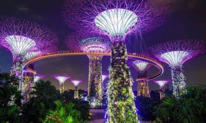 滨海湾花园是新加坡的地标之一。整个花园修的如同阿凡达世界。参天“大树”展现著现代科技的美丽。在空中走道Sky Walk走一走,夜晚的时候看一场灯光秀。是本地人常见的约会方式之一。