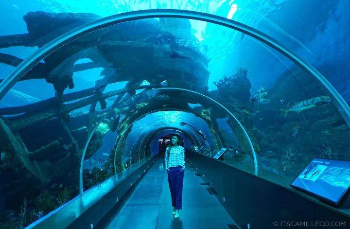 可能跟起来海洋馆看起来也大同小异。稍微精致一些。官网宣传语写的是:有 10 大区域 49 个生态区。Open Ocean 生态区的巨型玻璃拱形观景墙至少 25 万公斤重,相当于两排各三辆双层巴士叠放在一起。海水容量达 1800 万升。一开始的沉船造型有够震撼,水母区也异常美丽,还可以体验一把手摸海星。也有餐厅海之味,可以浪漫的看着水滴风光吃饭。提早预订还可以跟海豚共舞。