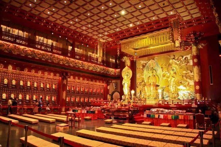 是一座中国唐代风格的寺庙,大概是我见过的最华丽的寺庙之一了。修的那叫一个富丽堂皇,一共5层楼高,顶层是个空中花园。其中的佛牙更是被供在一个由320公斤黄金制成佛塔之中。时常会有一些本地人在此打坐冥想。另外地下一层是个素菜饭堂。