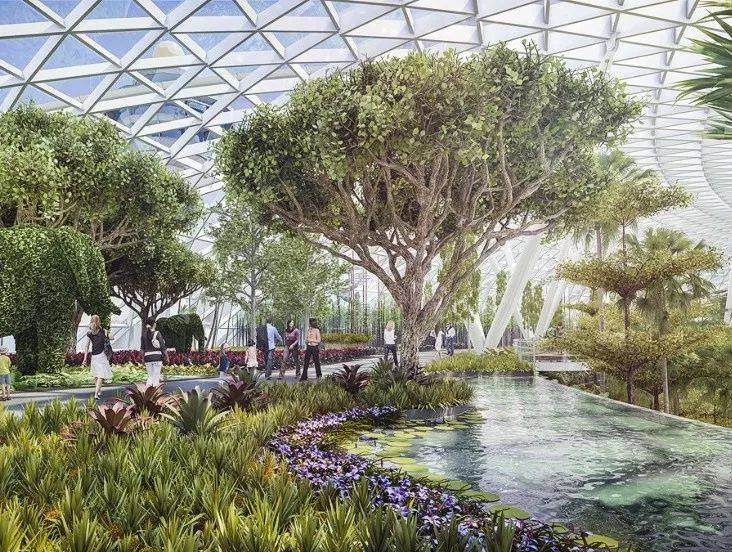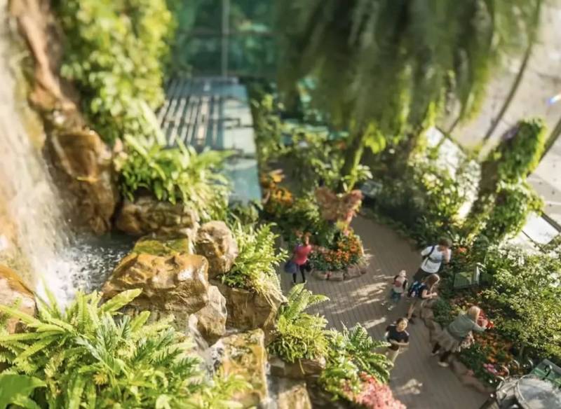 在郁郁葱葱的绿树丛中,体验新加坡最大的室内植物群落之一;驻足于此,如同世外桃源,完全不像在机场等待中转。