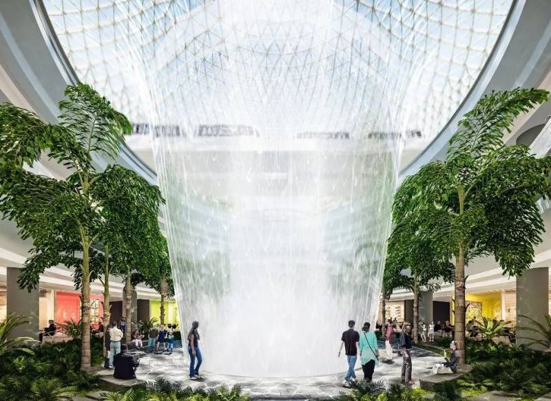 高达40米的雨旋涡,位于“星耀樟宜”的中心位置。它是世界最高的室内瀑布,无疑是“星耀樟宜”的一大亮点。