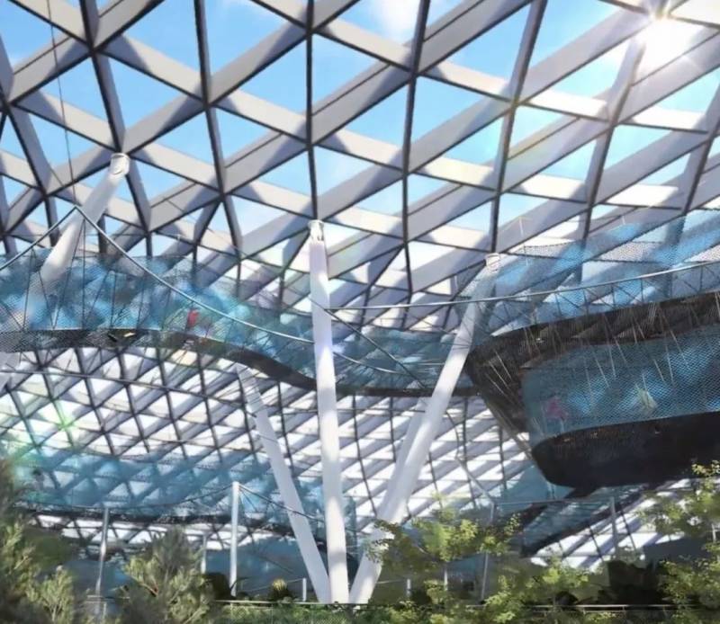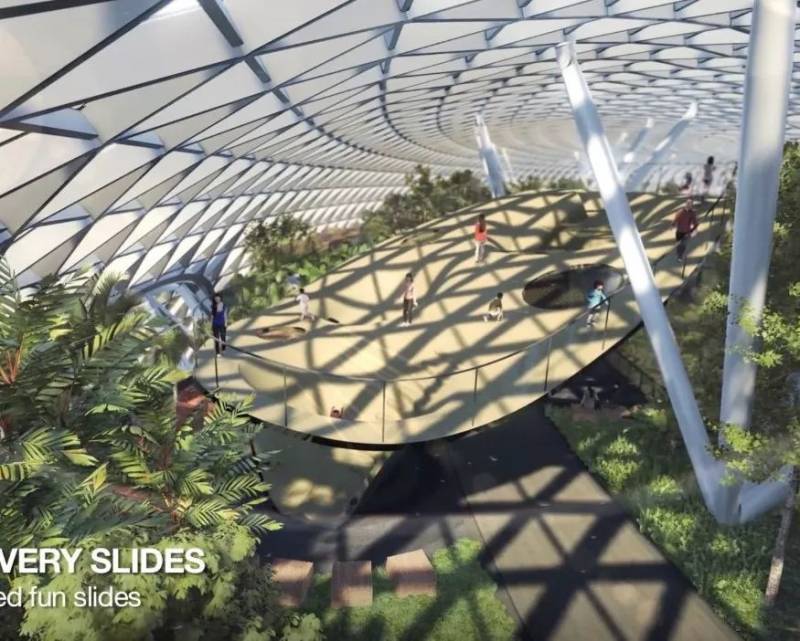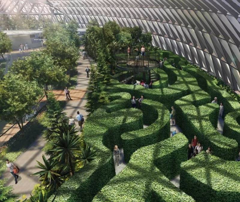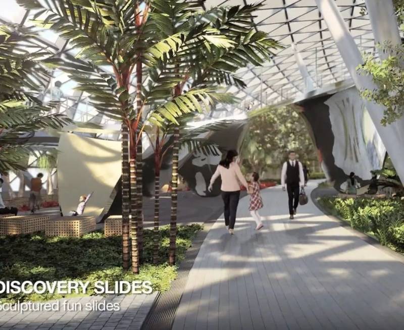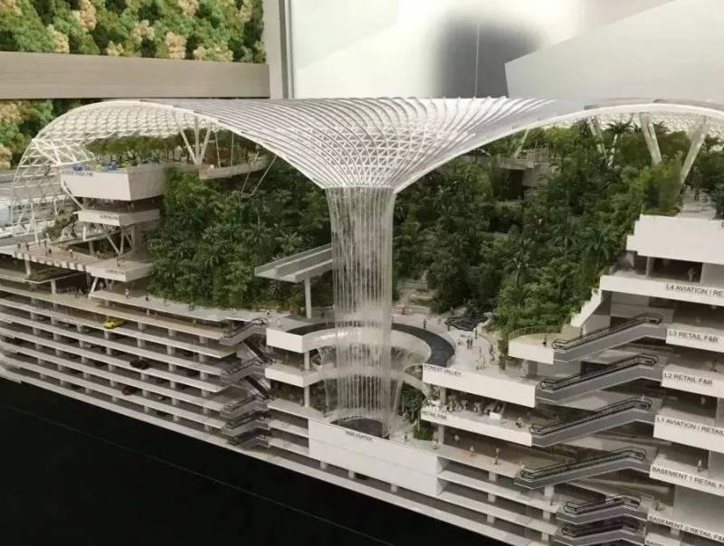 “星耀樟宜”全馆上下共有十层,是一座汇聚航空建设、购物休闲、住宿餐饮、花园景观、和游乐设施等多功能于一体的综合性建筑;