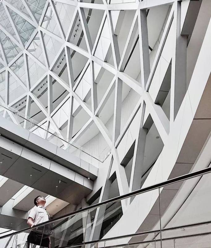 从外部看来,它圆形充满现代感的玻璃屋顶十分吸睛;实际上它是由9, 000多片玻璃,近18, 000个钢梁,6, 000多个铸钢节构成;可谓创意十足。
