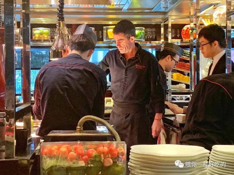 主厨很认真的为即将被端上桌的每盘食物做最后的把关。只要主厨点了一下头,这一盘盘的料理随即会被端到大家的面前。