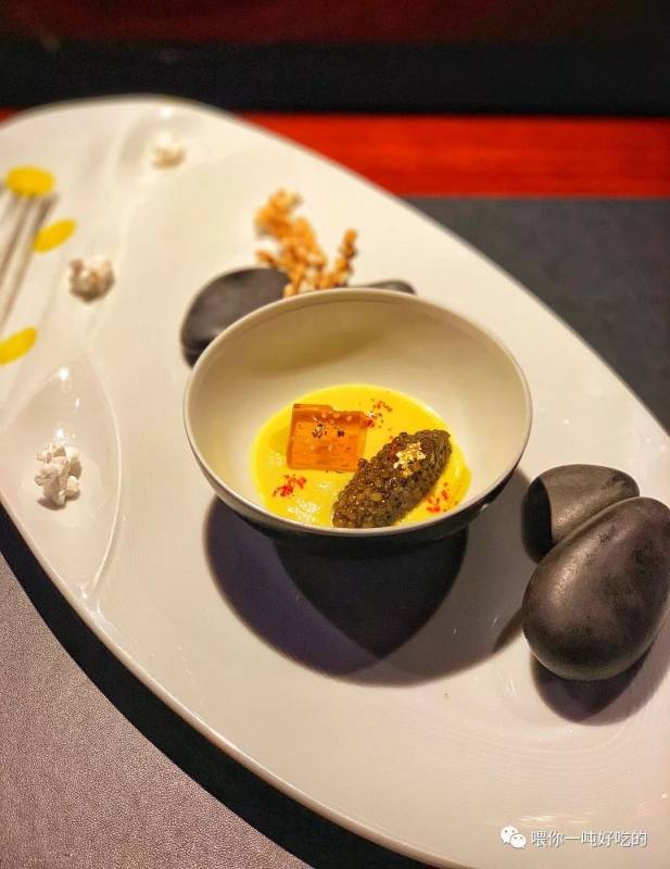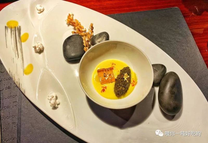 这顿法餐之旅从第一道料理开始,就展现出主厨满满的诚意。少许的金箔点缀在鱼子酱上,让这道菜多了一点贵气。