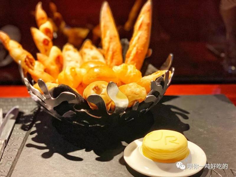 但害怕自己吃太饱而没法品尝接下来的主食,只简单的吃了一个迷你的牛角包。如果有同样困惑的小伙伴其实大可不必担心,因为服务员会在用餐快结束的时候贴心的帮忙把整篮面包都打包起来,方便大家带走。